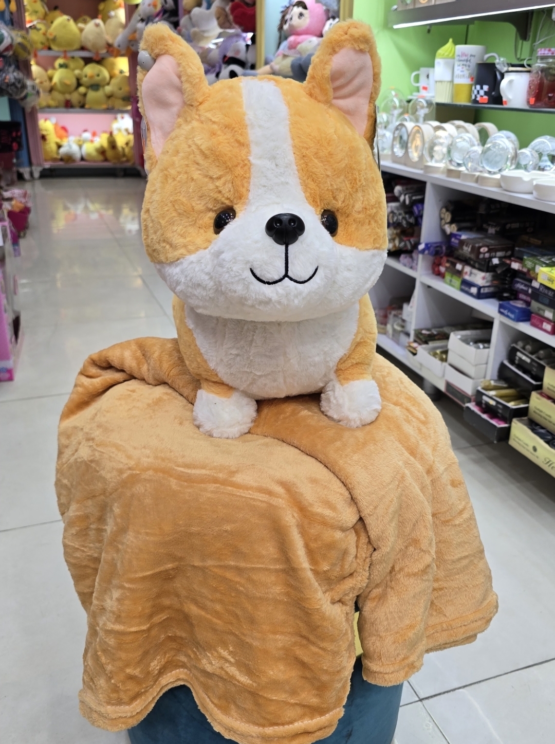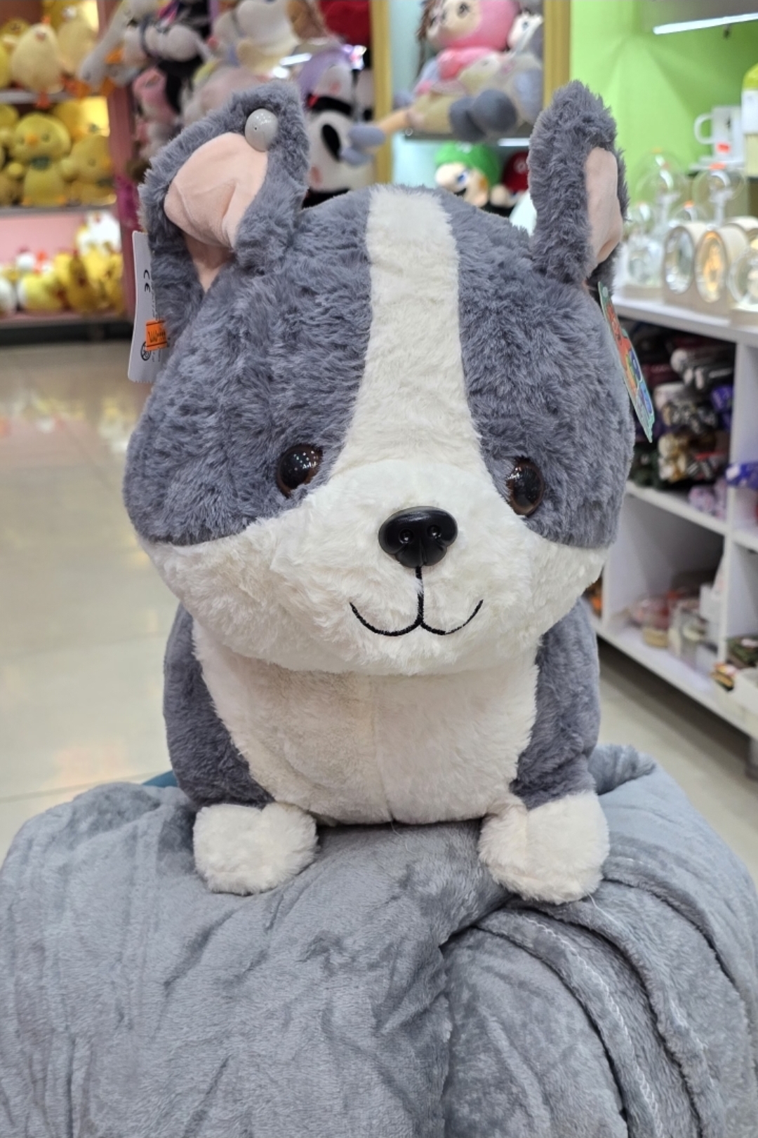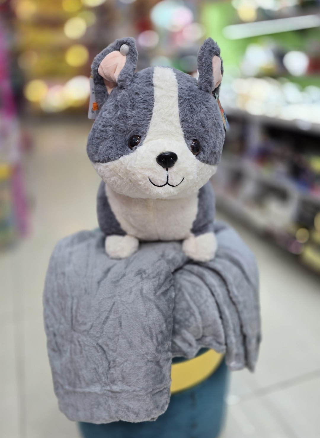 عروسک پاکوتاه طوسی و خردلی پتودار