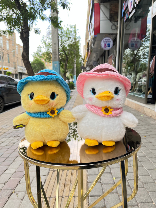 عروسک جوجه اردک شالگردن دار جنس پولیشی همراه با قابلیت شستشو.موجود در دورنگ