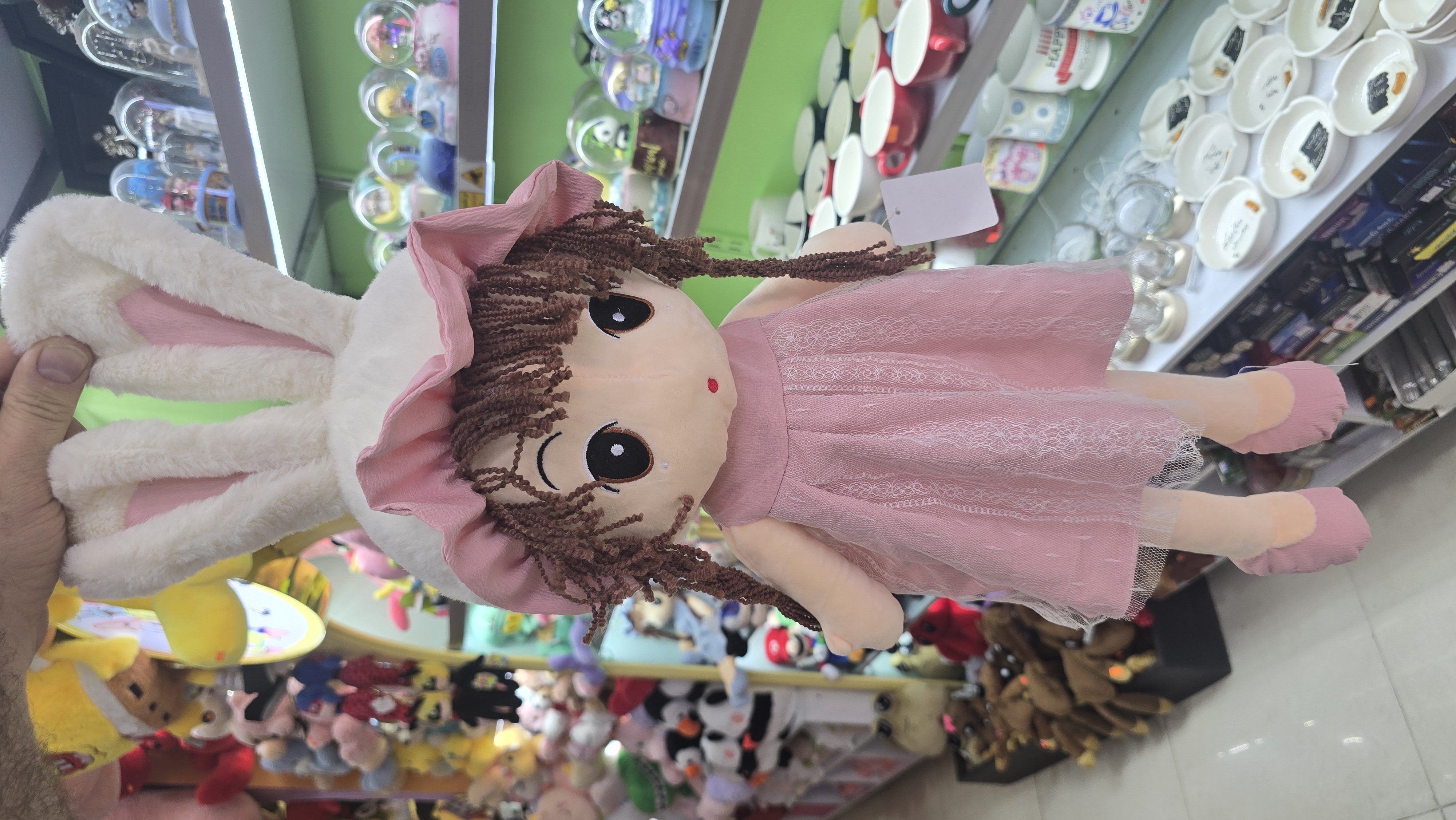 عروسک دخترونه کلاه خرگوشی خارجی و اورجینال پارچه نانو قابل شستشو در ماشین لباسشویی در دو رنگبندی آبی و صورتی سایز۷۰ سانتی